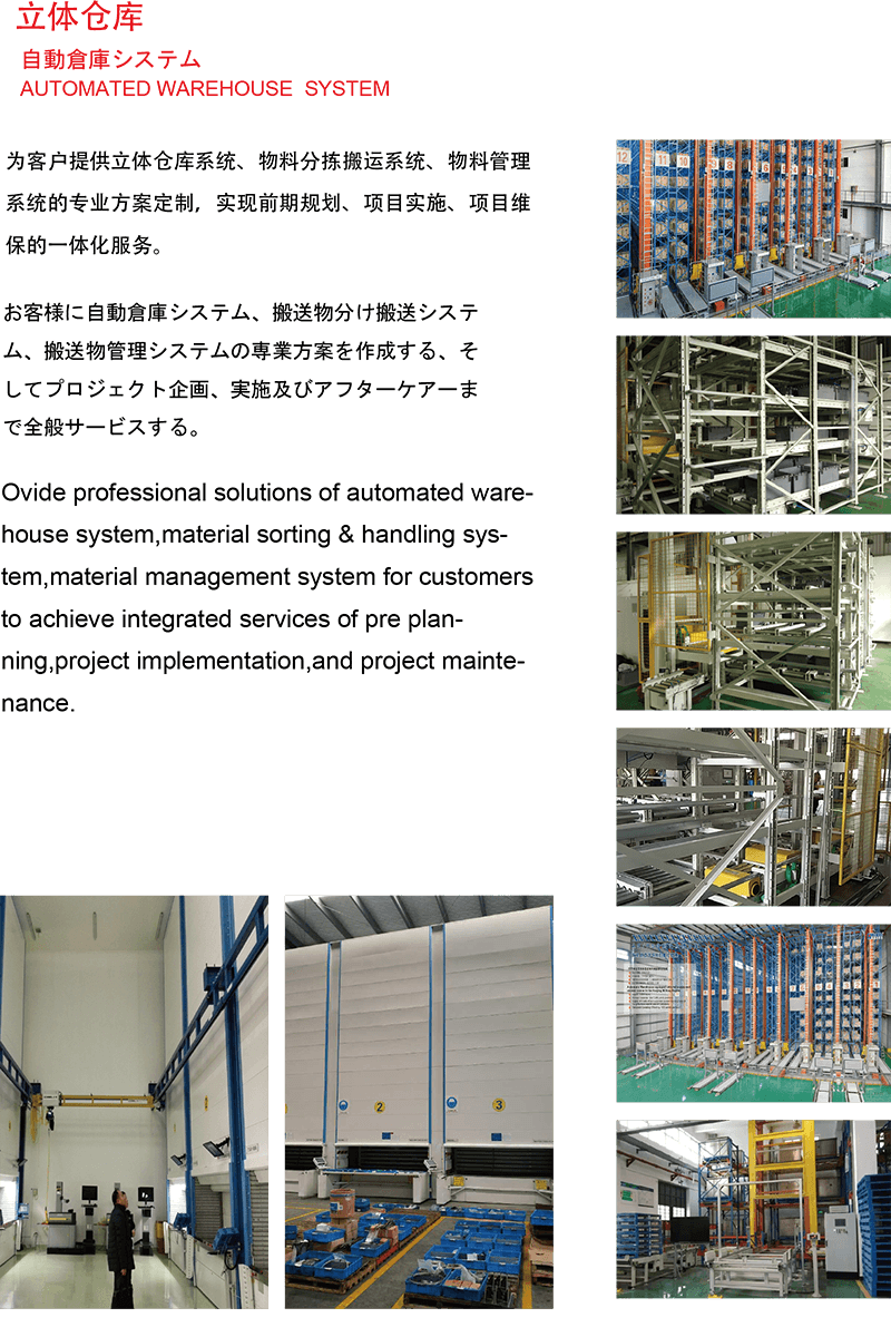 La società è specializzata nella fornitura di soluzioni professionali per sistemi di magazzini tridimensionali automatizzati, sistemi di smistamento e gestione dei materiali e sistemi di gestione dei materiali. Queste soluzioni sono completamente integrate, garantendo che ogni fase del processo, dalla progettazione e l'implementazione al supporto continuo, sia coperta. Con una profonda comprensione delle esigenze dei clienti, i servizi di Wuxi Huiqian sono personalizzabili, garantendo che ogni sistema sia adattato a prestazioni ottimali.