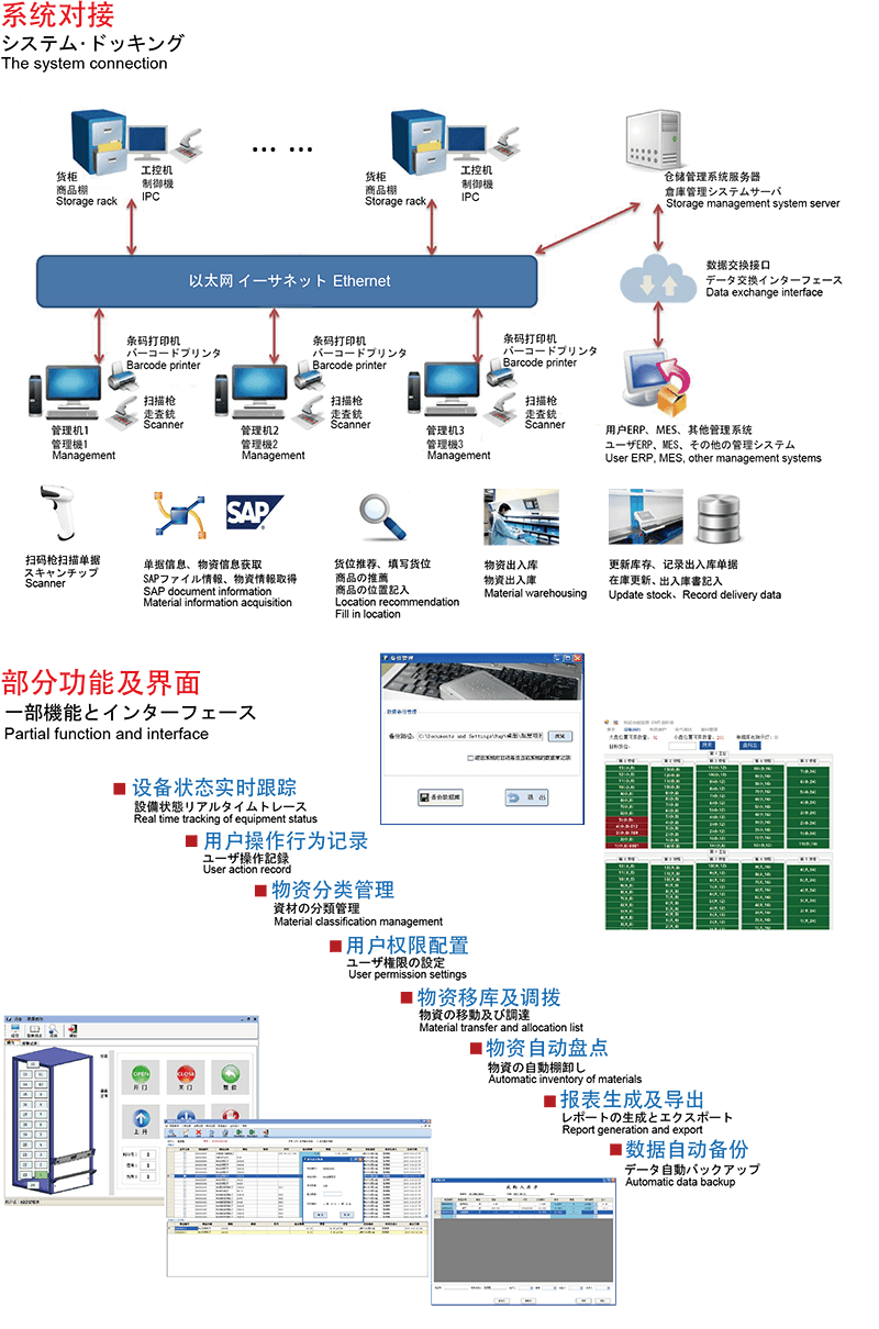 Al centro di queste soluzioni c'è il sistema di gestione del magazzino maturo e sviluppato in modo indipendente (WMS). Questo sistema avanzato non è solo potente nella gestione delle complessità dei magazzini moderni, ma anche flessibile. Può essere regolato e ridimensionato in base ai requisiti specifici dei clienti, garantendo che supporti sia le piccole operazioni che le imprese su larga scala. Il WMS si integra perfettamente con altri sistemi aziendali come ERP, MES e SAP, offrendo alle aziende una piattaforma unificata per la gestione delle loro operazioni.