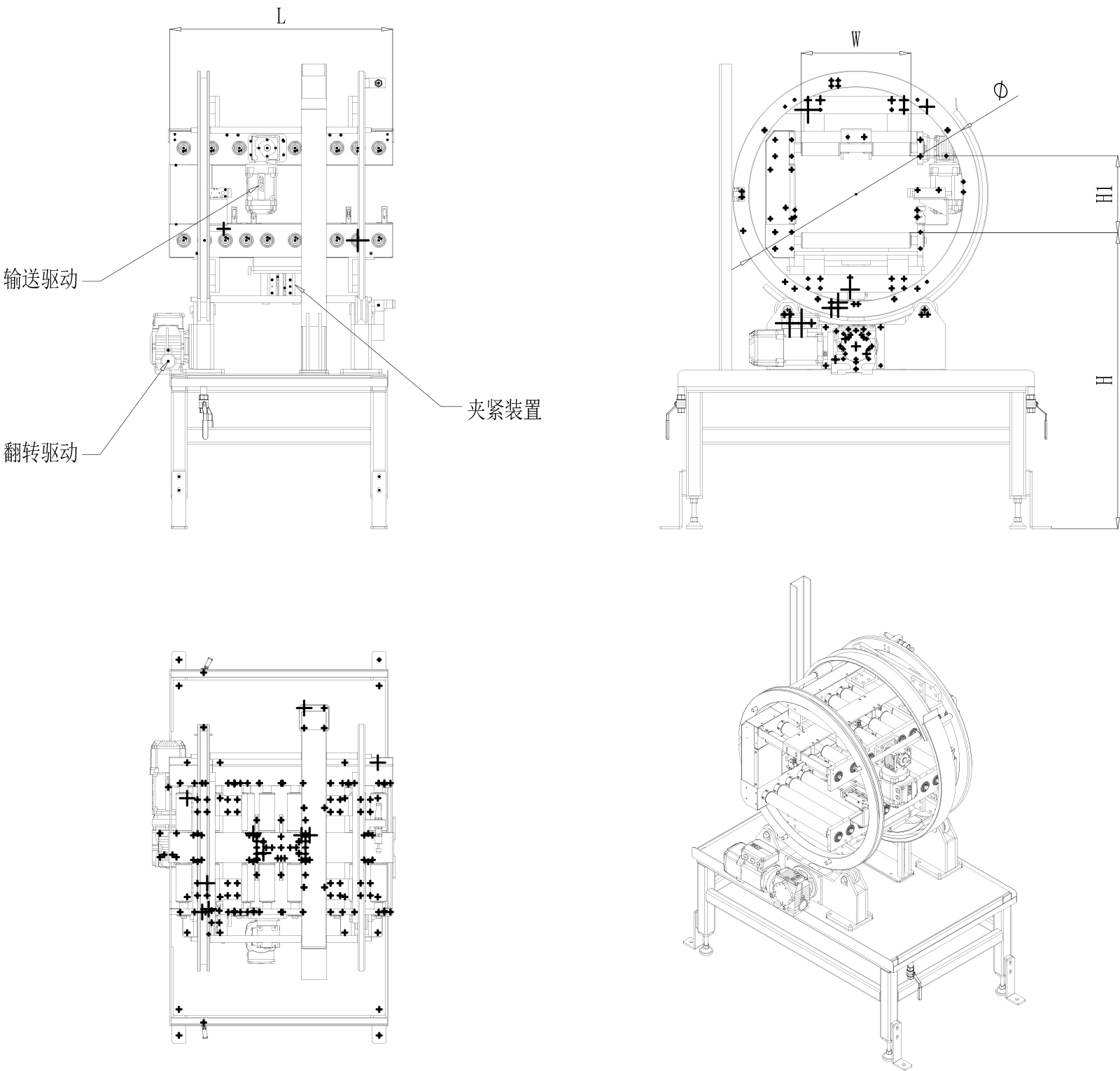 La pinna del trasportatore è ampiamente utilizzata nelle linee di montaggio per capovolgere i pezzi di lavoro. Di solito viene dotato di trasportatori superiori e inferiori, dispositivi di serraggio pneumatico/elettrico e meccanismi di lancio di 90 o 180 gradi.
