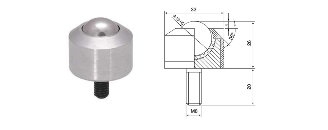 | D-6h (19) | 6105 | BS/CS | 40 | 50 | 19.05 | 32 | 26 | 4 | 20 | M8 | 0.130 |