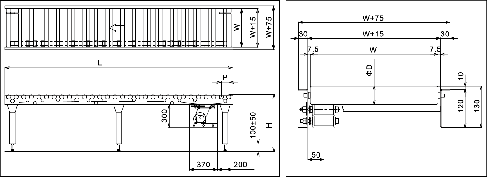 | Pitch a rulli | P (mm) | 50 75 100 | 75 100 |