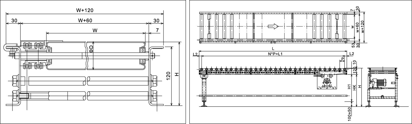 | Pitch a rulli | P (mm) | 50 75 100 | 50 75 100 | 75 100 | 75 100 | 75 100 | 75 100 |