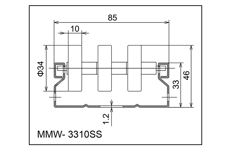 | MMW-3310SS | 33 × 10 × 5 × 21,5 (68) | 5 × 82L | 33 × 85 × 1.2 | 46 | 1000 · 2000 · 3000 | 25 Tipo sfalsato | 10 | Galvanizzato elettro | PE |