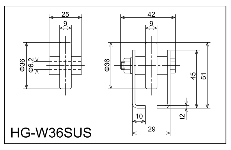 | HG-W36SUS | 36x9x6.2x25 | M6X38L | 45x29x10x42x2.0 | 51 | 1800 · 2400 · 3000 | 50 · 75 · 100 · 150 | 40 | A |