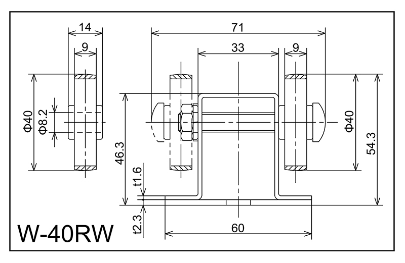 | W-40RW | 40x9x8.2x14 | M8X55L | 46.3x60x33x71x2.3 | 54.3 | 1800 · 2400 · 3000 | 50 · 75 · 100 · 150 | 20 | K | NBR |