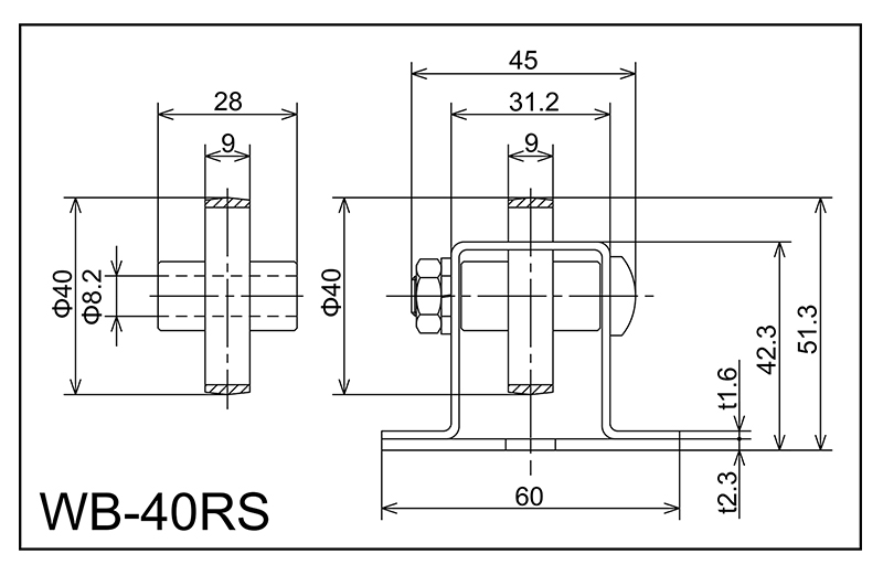 | WB-40RS | 40x9x8.2x28 | M8X40L | 42.3x60x31.2x45 × 23 | 51.3 | 1800 · 2400 · 3000 | 50 · 75 · 100 | 20 | F | NBR |