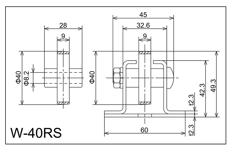 | W-40RS | 40x9x8.2x28 | M8X40L | 42.3x60x32.6x45x2.3 | 49.3 | 1800 · 2400 · 3000 | 50 · 75 · 100 · 150 | 20 | J | NBR |