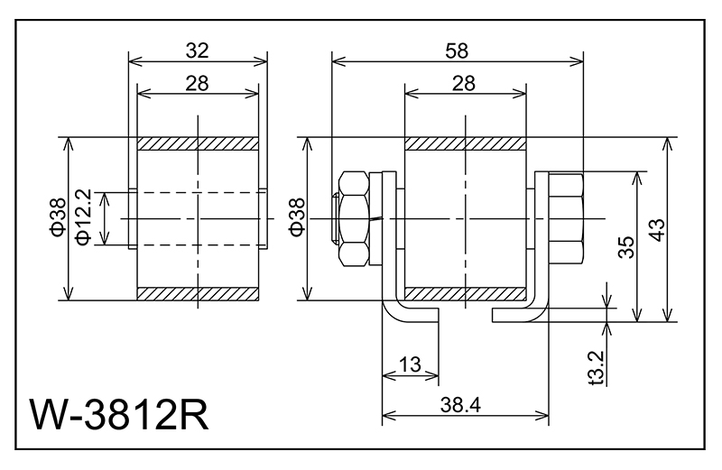 | W-3812R | 38x28x12.2x32 | M12X50L | 35x38.4x13x58x3.2 | 43 | 1000 · 1500 · 2000 | 40 · 70 · 100 | 80 | A | NBR |